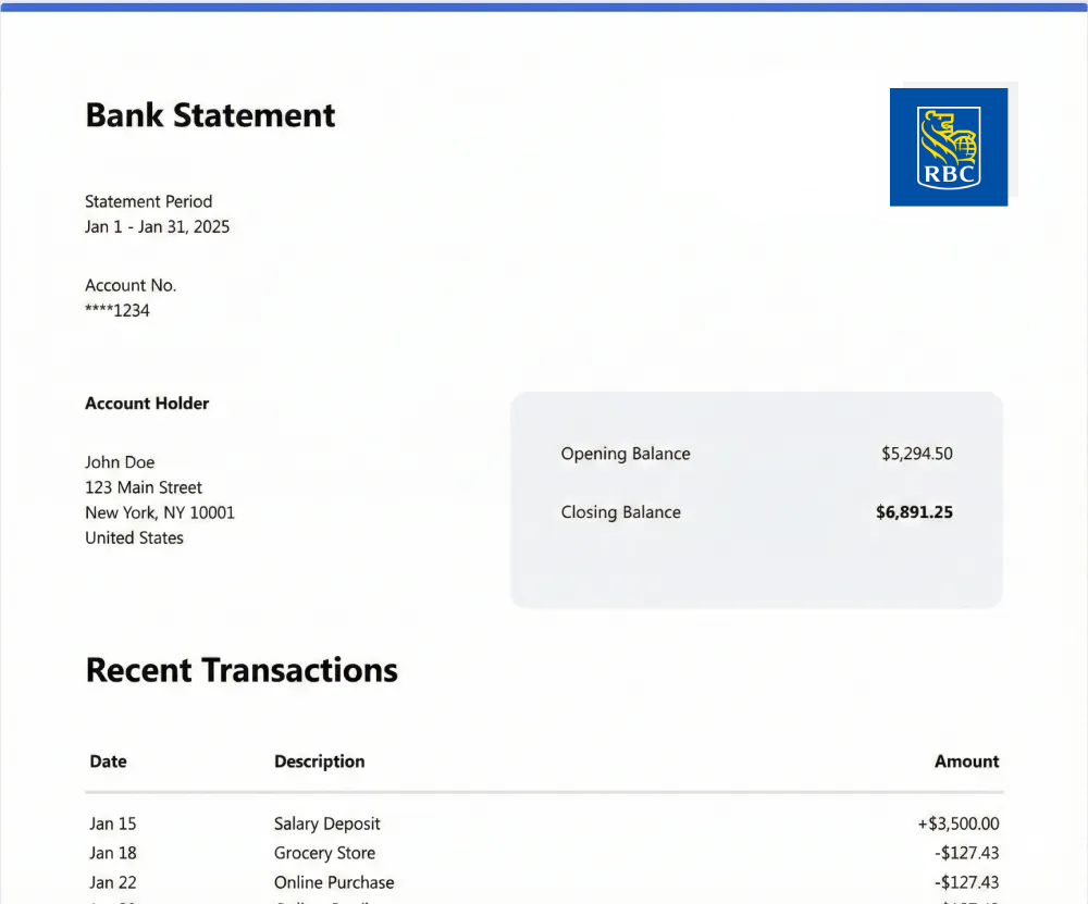 RBC statements may include checking accounts, savings accounts, or credit card summaries with multi-page layouts and detailed transaction sections. The converter automatically adapts and standardizes the data into a uniform structure, simplifying analysis and improving clarity.