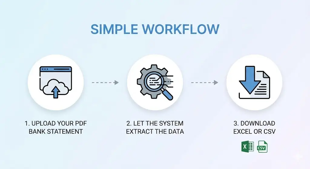Convert PDF Bank Statements to Excel or CSV in Seconds.